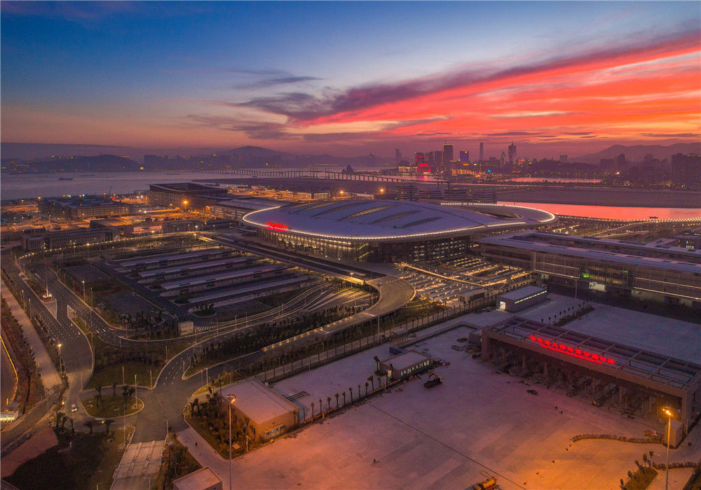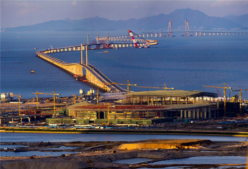 晨曦中的港珠澳大橋珠澳口岸人工島(10月24日無人機拍攝)。2018年10月23日,港珠澳大橋正式開通。在這座圓夢橋、同心橋、自信橋、復(fù)興橋開通一周年之際,記者親自體驗“一橋連三地、一日游三城”的悠閑與便利,于不同的旖旎風(fēng)光中自在游覽,在不同的城市風(fēng)貌間自如切換。新華社記者張金加攝