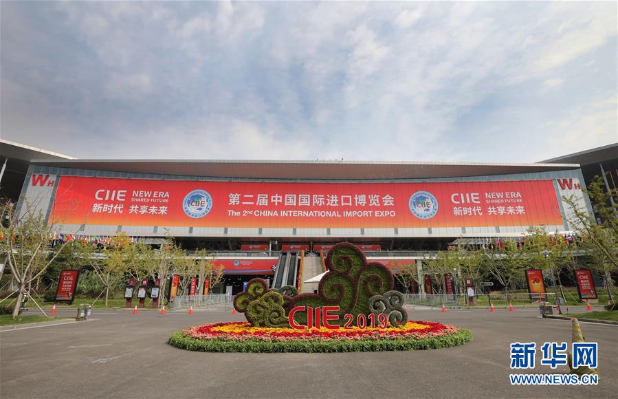 這是10月25日拍攝的國(guó)家會(huì)展中心(上海)西入口處。 第二屆中國(guó)國(guó)際進(jìn)口博覽會(huì)開幕在即,在進(jìn)博會(huì)舉辦地、國(guó)家會(huì)展中心(上海)內(nèi),展館搭建施工人員和展會(huì)志愿者們?cè)谶M(jìn)行從展臺(tái)搭建到完善觀展標(biāo)識(shí)等的布展準(zhǔn)備工作。   新華社記者 方喆攝