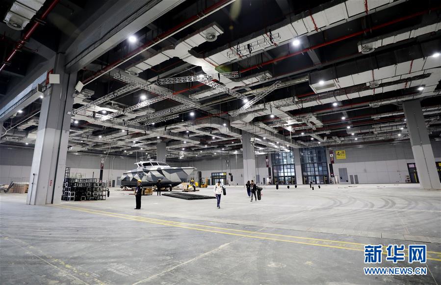 10月25日,在展館內(nèi),展臺(tái)框架搭建工作正在進(jìn)行。  新華社記者 方喆攝