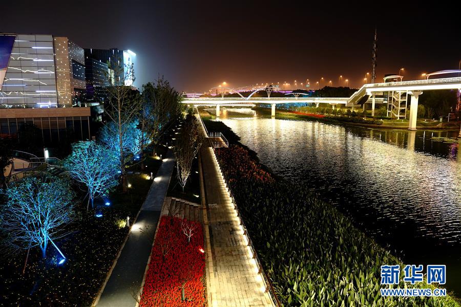 10月25日晚在國家會(huì)展中心(上海)附近拍攝的北橫涇夜景。新華社記者張建松攝