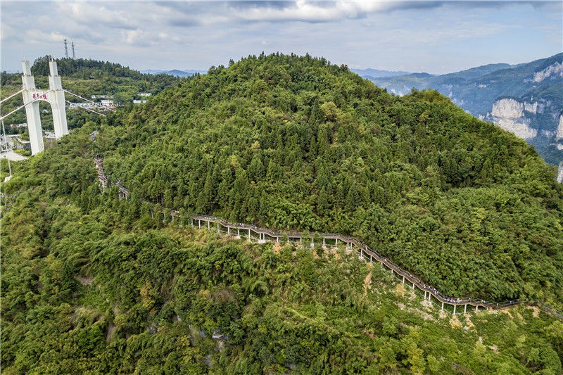 2019年9月13日,游客在重慶市黔江區(qū)城市峽谷景區(qū)芭拉胡的懸崖棧道上游玩。當天是中秋節(jié)假的第一天。楊敏/視覺中國編輯/陳進
