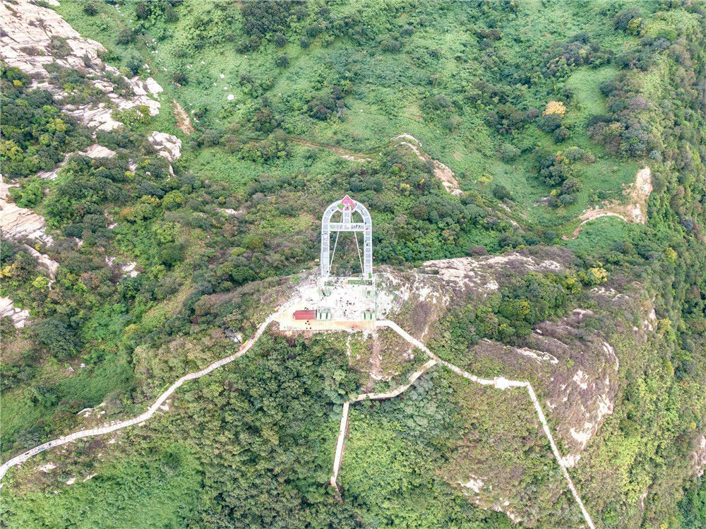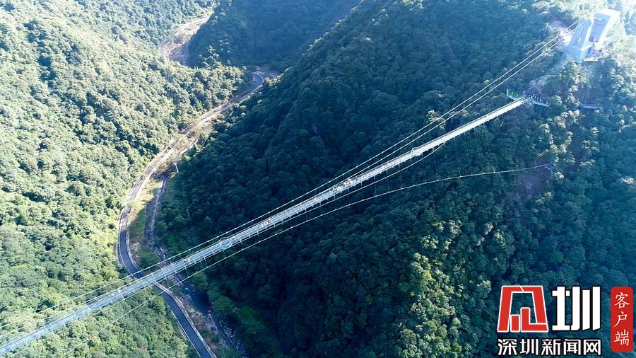 2019年8月24日,說到“玻璃天橋”,恐高的人雙腳發(fā)抖,膽大的人躍躍欲試,在國內(nèi)的湖南張家界、福建三明尤溪、河南嵩山三皇寨等地,已經(jīng)出現(xiàn)了不少與自然景觀、人文歷史融為一體的玻璃天橋,讓游客們大呼過癮。現(xiàn)在,浙江臺州人可以就近去三門過一把“行走在云端”的癮了。今年夏天,全長419米、垂直高度199米玻璃景觀懸索橋,出現(xiàn)在臺州三門潘家小鎮(zhèn)情人谷,刺激程度絕不亞于張家界玻璃橋。這座橋橫跨牛郎峰、織女峰之間,可將潘家小鎮(zhèn)的美麗風景盡收眼底。圖為航拍玻璃天橋。