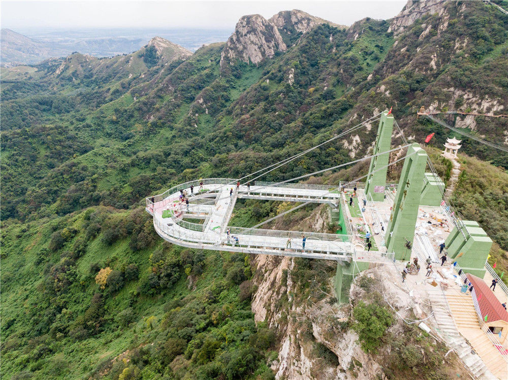 恐高勿入!“高空玻璃懸廊”在河南南陽七峰山落成