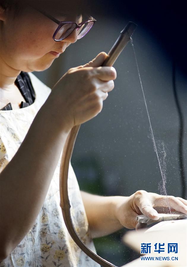 北京金漆鑲嵌有限責(zé)任公司的技師在制作漆藝瓶(10月31日攝)。新華社記者李欣攝