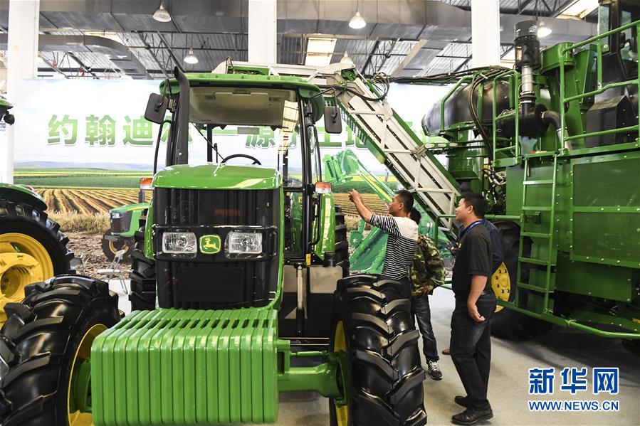 11月16日,參觀者在展會(huì)現(xiàn)場(chǎng)參觀甘蔗收割機(jī)械設(shè)備。新華社記者曹祎銘攝