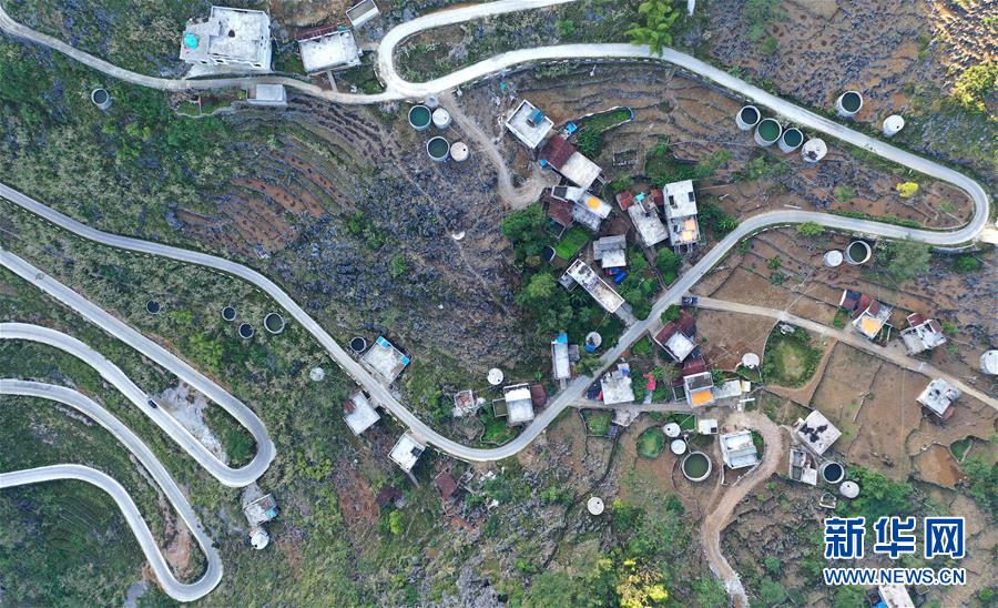 廣西大化瑤族自治縣七百弄鄉(xiāng)弄騰村群眾的家庭水柜分布在房前屋后(11月9日無人機(jī)拍攝)。新華社記者黃孝邦攝