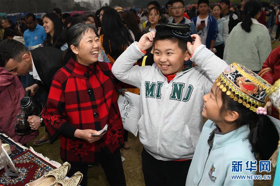 11月17日,來自俄羅斯的留學(xué)生在國際文化節(jié)上將自己制作的美食給觀眾品嘗。 新華社記者 張端 攝