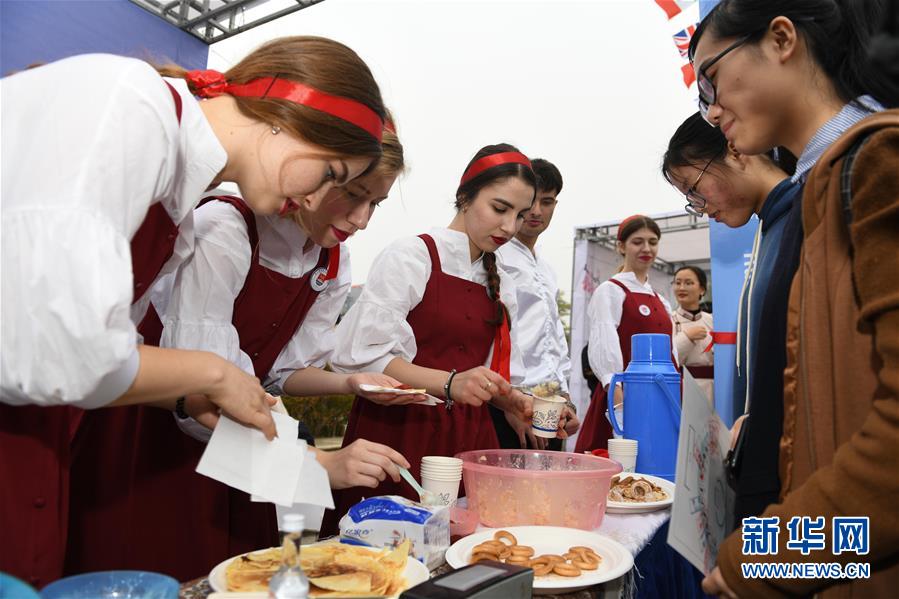 11月17日,來自俄羅斯的留學生在國際文化節(jié)上將自己制作的美食給觀眾品嘗。 新華社記者 張端 攝