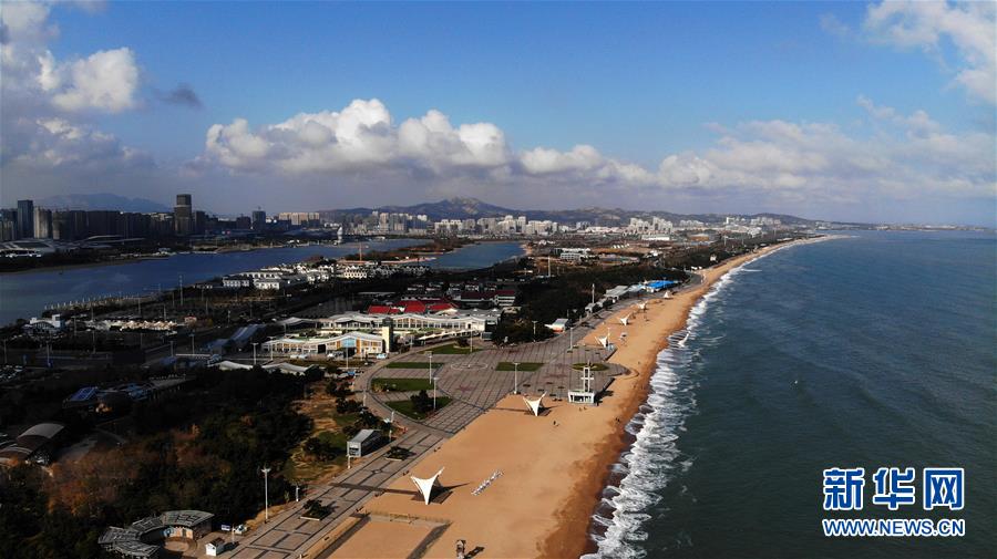 11月22日無人機拍攝的日照市萬平口海濱風(fēng)景區(qū)。山東省日照市萬平口海濱風(fēng)景區(qū)是當(dāng)?shù)芈糜蔚囊粡垺懊?,該景區(qū)憑借優(yōu)美的海灘、良好的水質(zhì)吸引了不少游客。新華社記者王凱攝