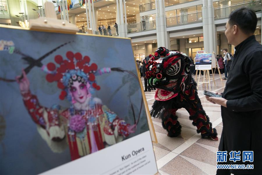 11月22日,在美國華盛頓,演員在“北京日”文化廟會活動(dòng)上表演舞獅。作為中國北京和美國首都華盛頓締結(jié)友好城市35周年慶?;顒?dòng)的一部分,“北京日”文化廟會22日在華盛頓羅納德·里根大廈和國際貿(mào)易中心舉行。新華社記者劉杰攝