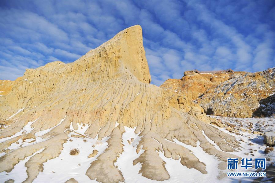 11月26日,來自全國百家旅行社的旅游業(yè)界人士在新疆福海縣烏倫古湖海上魔鬼城景區(qū)參觀。新華社記者沙達(dá)提攝