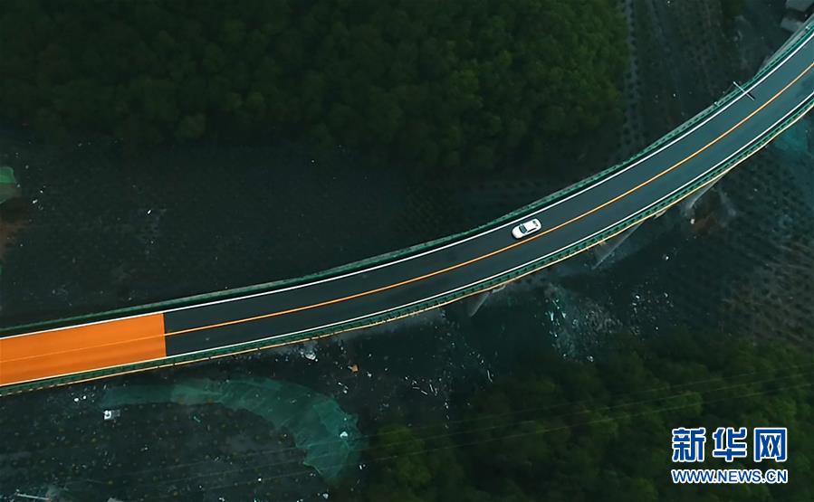 6月11日,一輛汽車(chē)在青海省扎隆溝至碾伯鎮(zhèn)公路上行駛(無(wú)人機(jī)拍攝)。新華社記者張宏祥攝