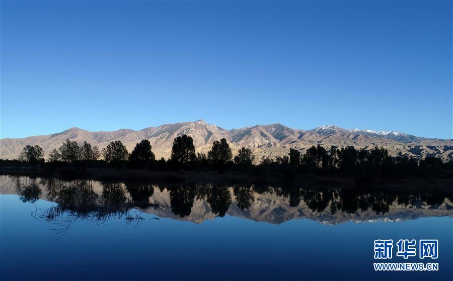 在青海貴德,千姿湖景區(qū)內(nèi)群山與湖水相映成畫(huà)(4月16日無(wú)人機(jī)拍攝)。新華社記者張宏祥攝