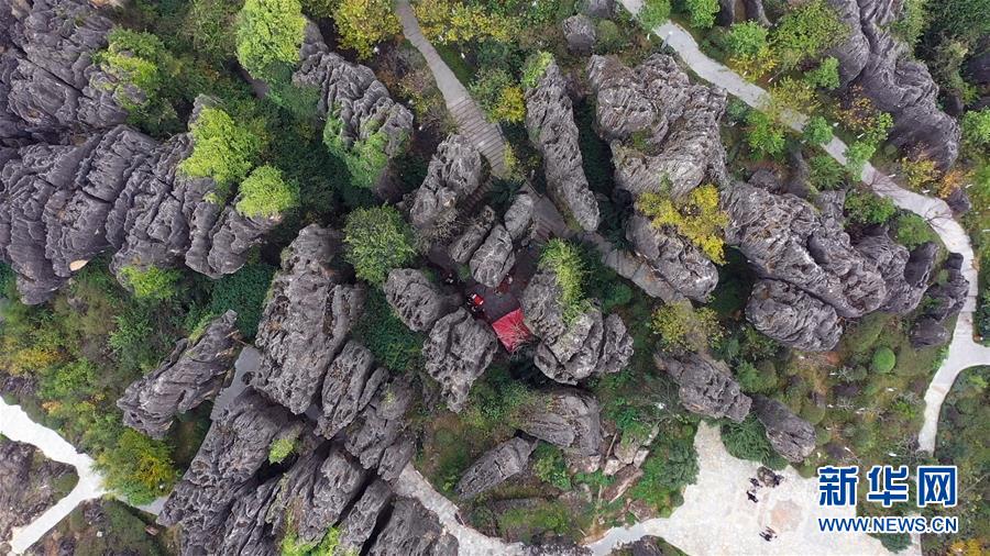 11月28日,空中俯瞰石林景區(qū)(無人機拍攝)。新華社記者江文耀攝