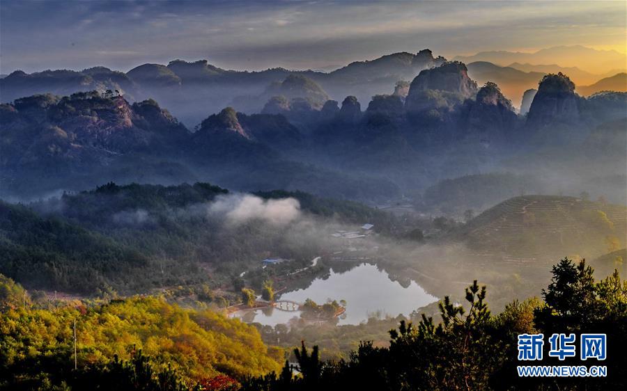 這是武夷山齊云峰晨曦(11月17日攝)。新華社記者張國(guó)俊攝