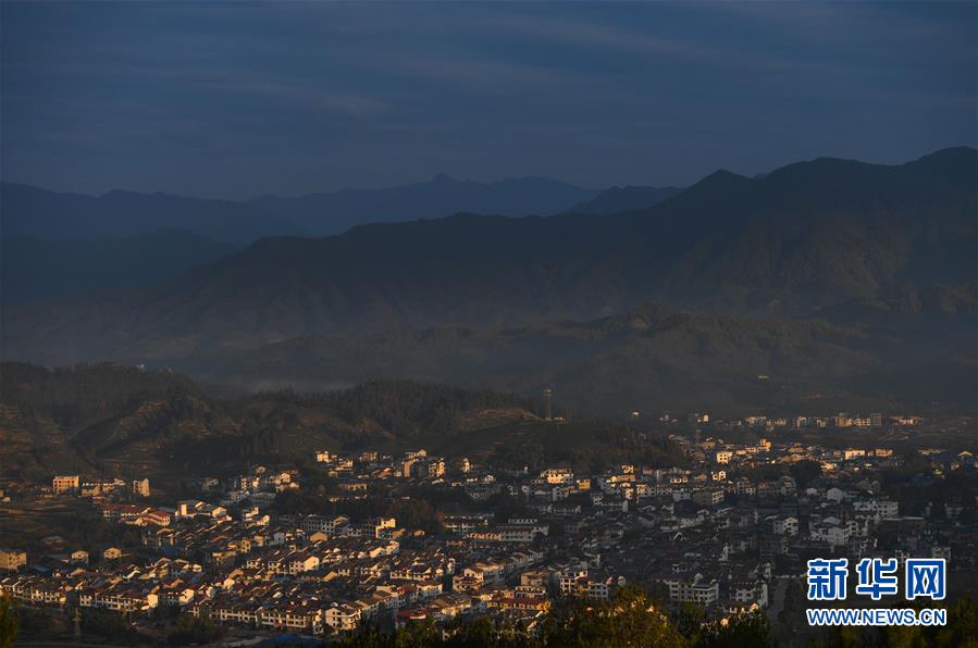 這是夕陽(yáng)下的武夷山下梅村(11月5日攝)。新華社記者馬平攝