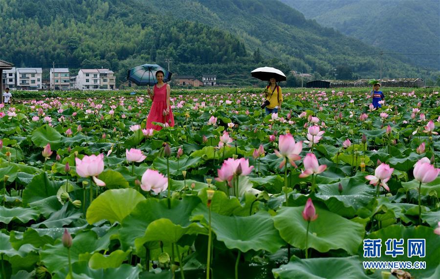 游客在武夷山市五夫鎮(zhèn)萬畝荷田賞荷(7月12日攝)。新華社記者張國(guó)俊攝
