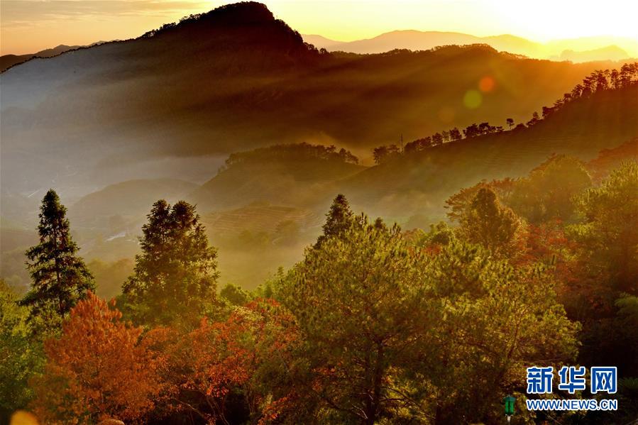 福建省武夷山的茶山云霧繚繞,在朝陽(yáng)照射下如夢(mèng)如幻(11月17日攝)。新華社記者宋為偉攝