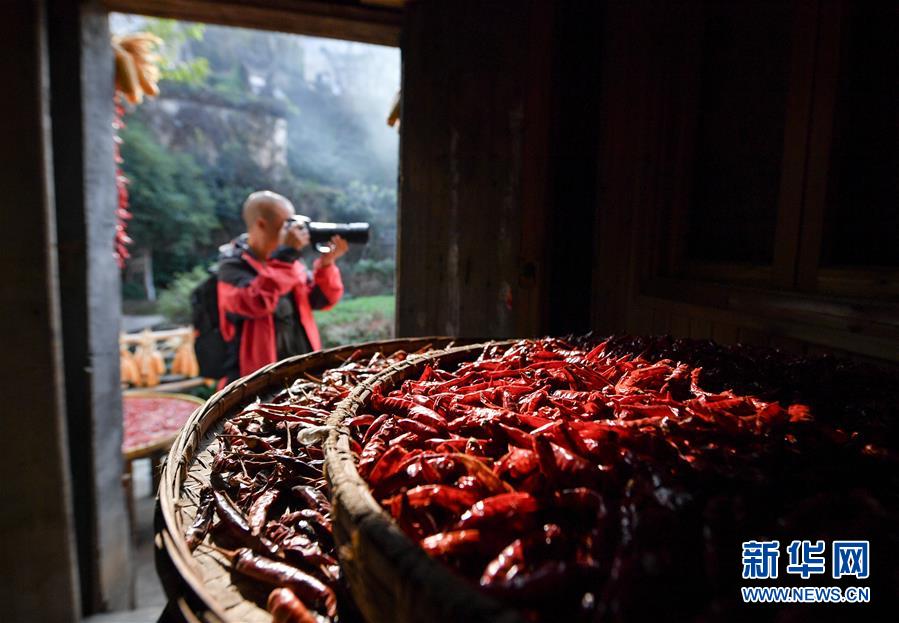 進入深秋,江西省婺源縣篁嶺古村“曬秋人家”秋色繽紛。