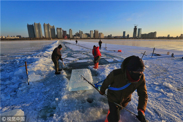 寒冬采冰人:起早貪黑 “淘金”冰雪