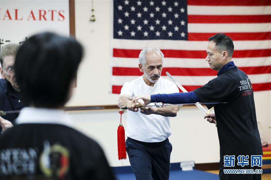 陳思坦在位于美國紐約長島的思坦太極武術中心指導學員練習太極劍(11月20日攝)。11月的紐約已進入初冬,位于美國紐約長島的思坦太極武術中心依然一片紅火景象,學員們從5歲的孩童到80多歲的老人,操練著太極拳、太極劍、長拳等武術招式。這里的主人陳思坦、林旭夫婦,也從早忙到晚,精心指導每一位學員的一招一式。6歲習武,22歲成為中國全國冠軍,26歲獲得首個世界冠軍……直到30歲退役,陳思坦在運動員生涯中曾獲得過32次國內外各類武術大賽冠軍。36歲那年,懷著以太極拳和中國武術為媒介向世界推廣中國文化的夢想,陳思坦到美國紐約尋找新的舞臺。經過十多年的艱苦打拼,陳思坦夫婦目前在紐約長島、法拉盛和曼哈頓都開設了長期的課程,思坦太極注冊在編的各個年齡段的學員近千人,有些“高徒”現在自己也開班授課,將太極推向更多地方。陳思坦夫婦現在思考更多的是如何將太極和武術推廣給更多的美國人,并讓他們理解其中蘊含的平衡、和諧的中國文化理念。他們創(chuàng)辦了紐約太極健身氣功活動日,在各類學校和社區(qū)開設太極或者武術課程,并利用美國的亞太裔文化月和多元文化節(jié)舉行武術和太極表演和體驗課程,讓更多美國人親眼看到、親身體會中國武術的魅力。從2011年起,他們還參與創(chuàng)辦了紐約太極大賽,如今已舉行九屆,吸引了美國、加拿大和中國國內的隊伍參賽,影響力逐漸擴大。新華社記者王迎攝