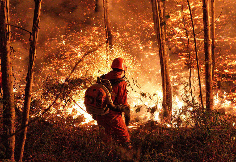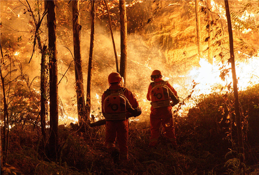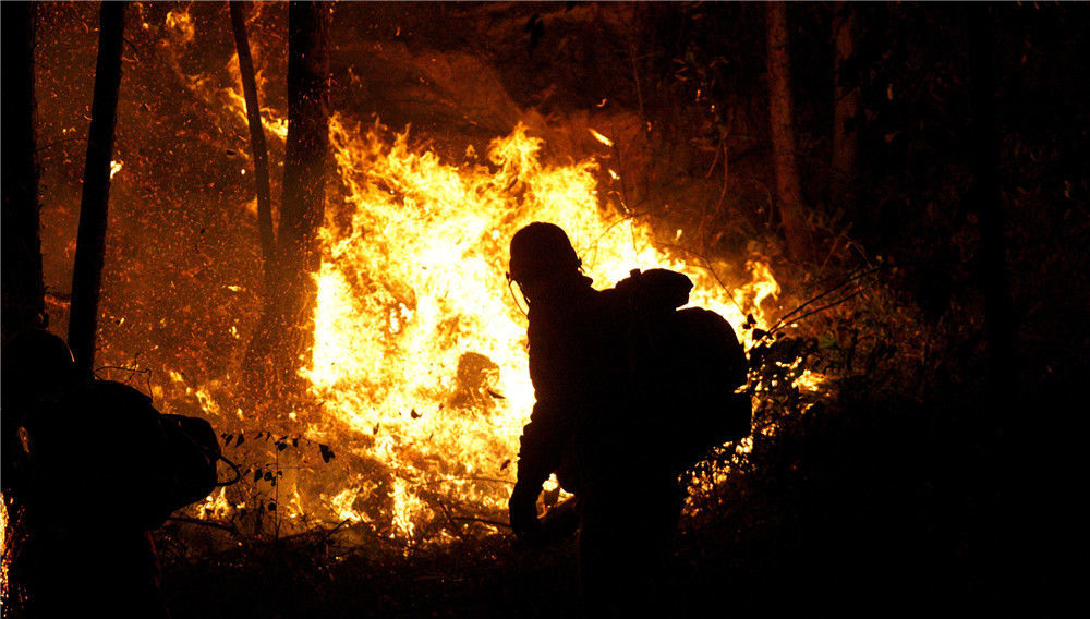 2019年12月7日凌晨一時多,廣東佛山,來自英德東華鎮(zhèn)的消防員們摸黑上山作業(yè)。經(jīng)過大約一個小時的奮戰(zhàn)后,山頭明火得到有效控制。