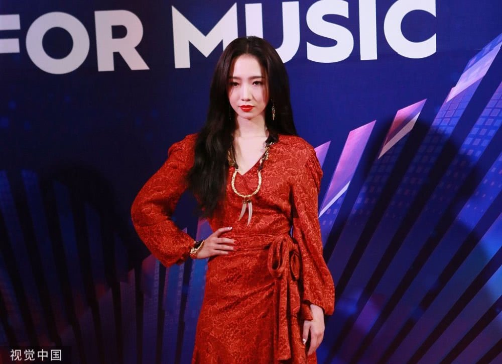 孟美岐身穿大紅色長裙搭配波浪卷發(fā),大走港風(fēng)美艷動(dòng)人。