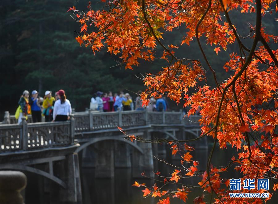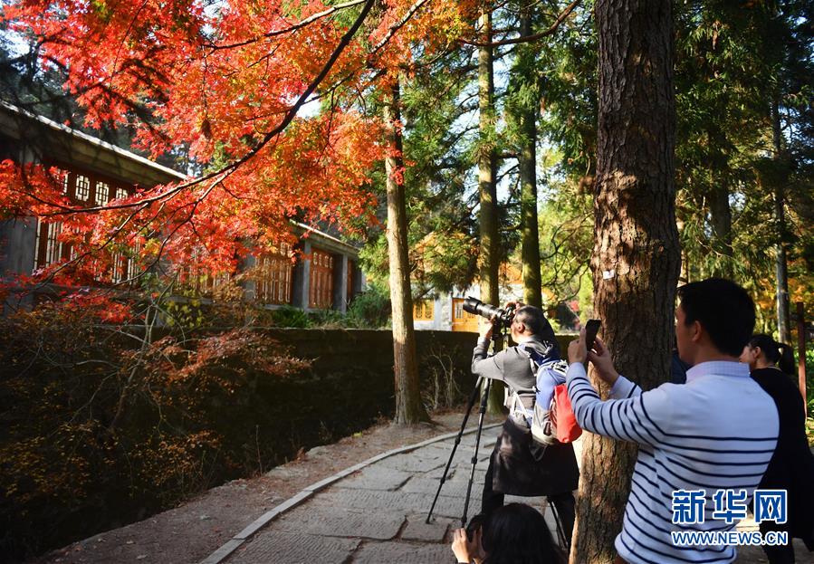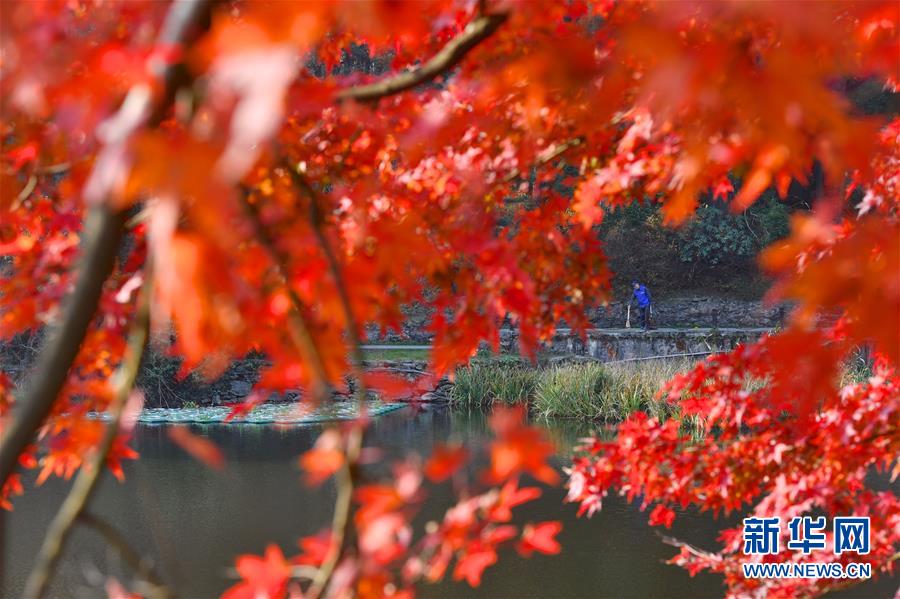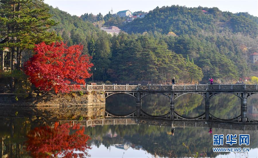 11月17日,游客在廬山如琴湖邊游玩。初冬時節(jié),江西廬山風景區(qū)層林盡染,火紅的楓葉吸引眾多游客前來參觀,令人流連忘返。新華社記者胡晨歡攝