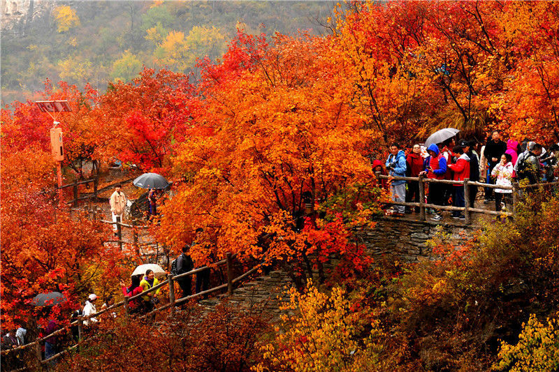 2019年11月3日上午,北京房山區(qū)坡峰嶺紅葉節(jié)現(xiàn)場,市民觀賞金秋美景。