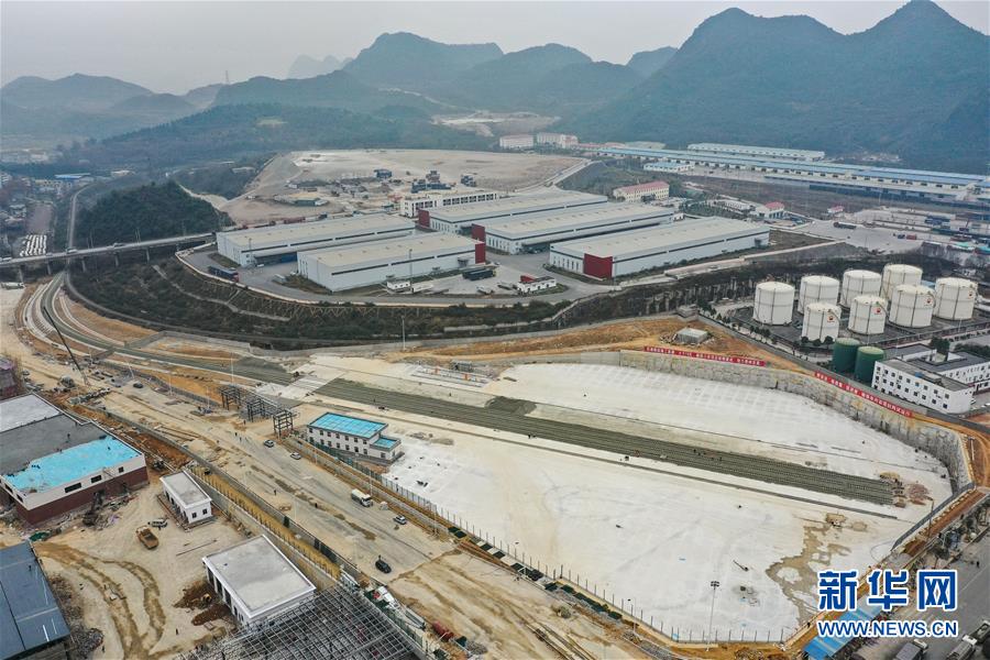 這是12月17日無人機拍攝的改貌鐵路口岸。 由中鐵八局承建的貴州省首個鐵路口岸——貴陽改貌鐵路口岸即將全面進入竣工驗收階段。據(jù)悉,貴陽改貌鐵路口岸為一級開放口岸,建成投運后將成為中歐班列的場站,年貨運吞吐量將達120萬噸,將進一步促進貴州省對接“一帶一路”和“國際陸海貿(mào)易新通道”,為貴州建設內(nèi)陸開放型經(jīng)濟試驗區(qū)提供有力支撐。 新華社記者 劉續(xù) 攝