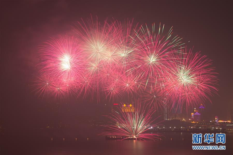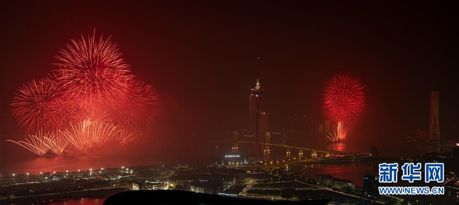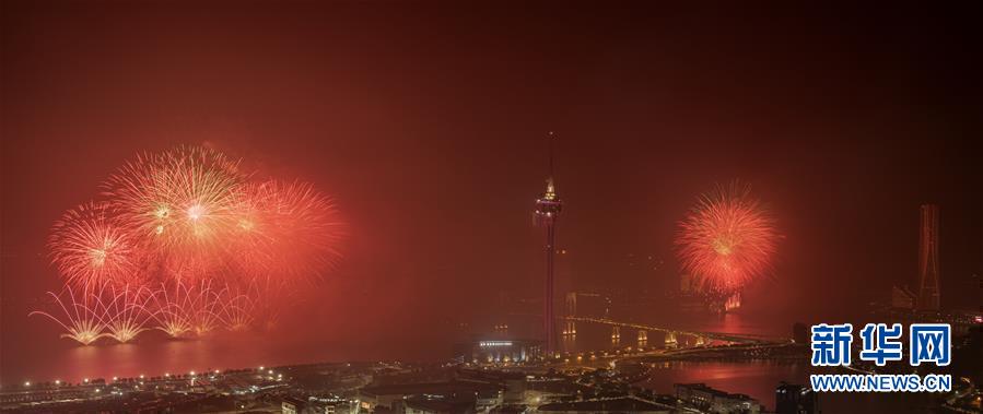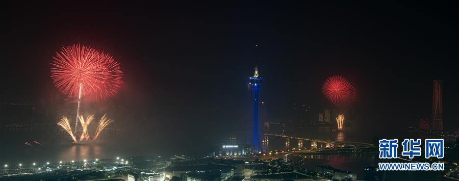 12月22日,煙花在澳門(mén)上空綻放。當(dāng)晚,澳門(mén)與珠海首次聯(lián)合舉行煙花匯演,慶祝澳門(mén)回歸20周年。新華社記者呂小煒攝