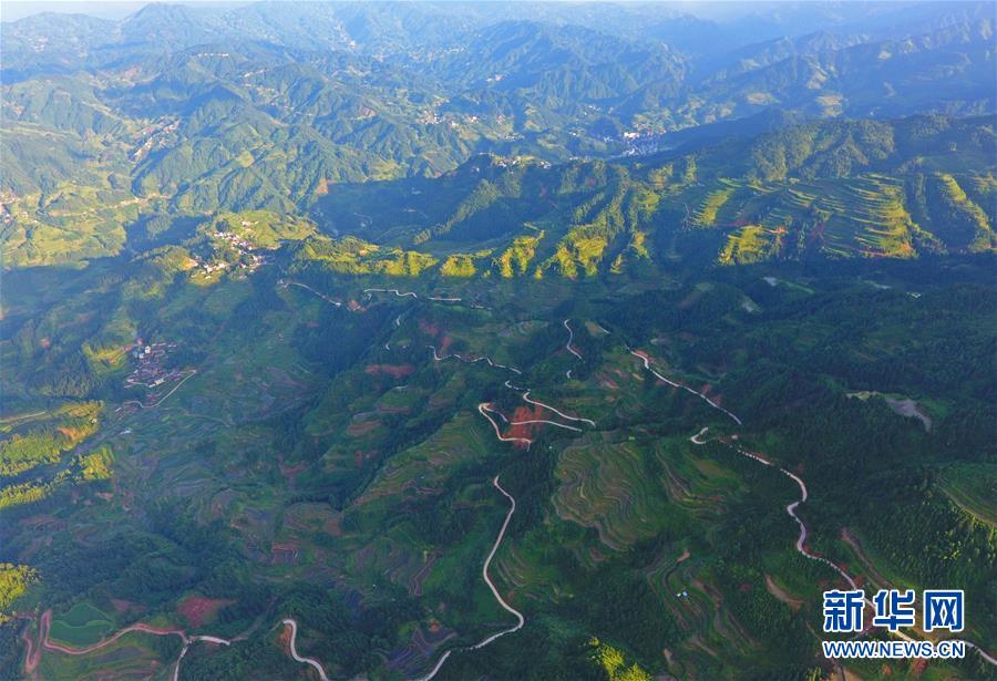 這是融水苗族自治縣桿洞鄉(xiāng)百秀村的村屯公路(6月20日無(wú)人機(jī)拍攝)。新華社記者黃孝邦攝