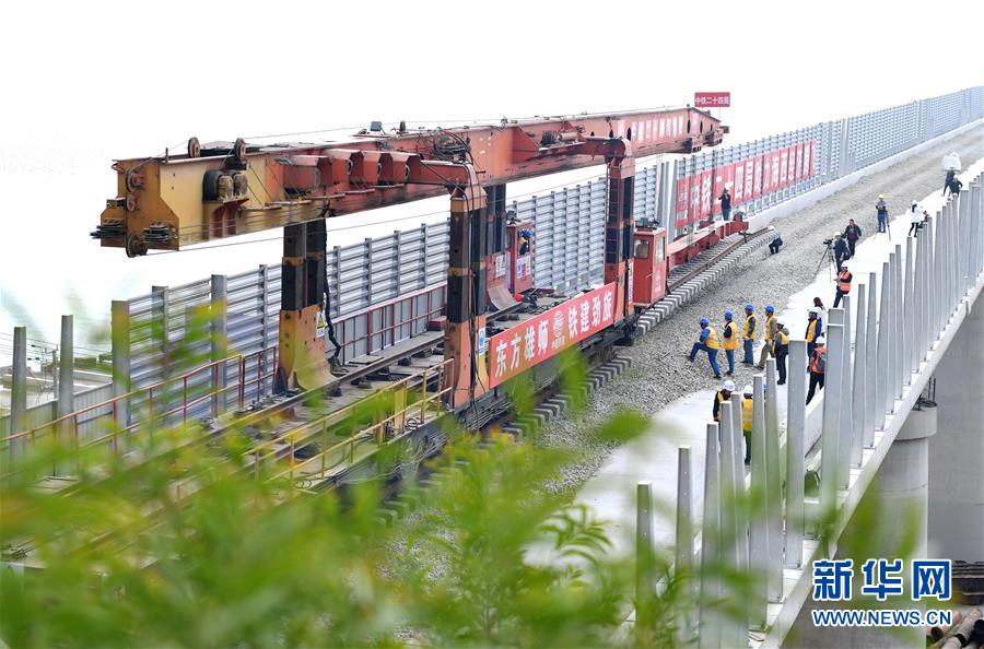 12月22日,中鐵二十四局工作人員在平潭海峽公鐵大橋鋪軌施工現(xiàn)場(chǎng)進(jìn)行鋪軌作業(yè)。當(dāng)日,總長(zhǎng)為16.34公里的福平鐵路平潭海峽公鐵大橋鋪軌正式啟動(dòng)。平潭海峽公鐵大橋是福州至平潭鐵路控制性工程,上層設(shè)計(jì)為時(shí)速100公里的六車道高速公路,下層為設(shè)計(jì)時(shí)速200公里的高鐵,大橋計(jì)劃2020年正式通車。新華社記者林善傳攝