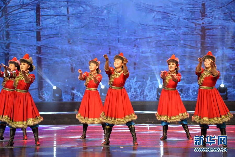 12月22日,演員在表演蒙古族布里亞特舞蹈《冬趣》。  新華社記者 徐欽 攝