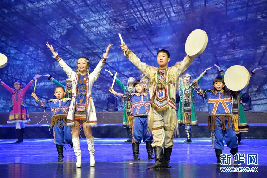 12月22日,演員在表演歌舞《敖魯古雅》。 當(dāng)日,冰雪之約——喜迎“十四冬”惠民文藝演出在呼倫貝爾大劇院舉行,為觀眾呈現(xiàn)一場(chǎng)“歌舞盛宴”。 新華社記者 徐欽 攝