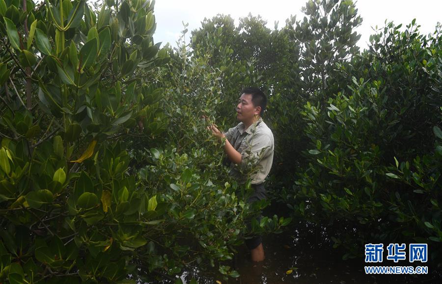 海南東寨港國(guó)家級(jí)自然保護(hù)區(qū)林業(yè)工程師馮爾輝在保護(hù)區(qū)內(nèi)的灘涂上查看紅樹(shù)林(12月18日攝)。 馮爾輝2009年大學(xué)畢業(yè)后來(lái)到保護(hù)區(qū)工作,小時(shí)候他家就住在紅樹(shù)林邊上,他從小和紅樹(shù)林打交道,喜歡動(dòng)植物和鳥(niǎo)類。外貿(mào)專業(yè)畢業(yè)的他邊工作邊學(xué)習(xí),目前主要從事鳥(niǎo)類監(jiān)測(cè)、紅樹(shù)林保育、自然教育等工作?!凹t樹(shù)林看著我長(zhǎng)大”,馮爾輝說(shuō),濕地保護(hù)的工作非常有意義。 新華社記者楊冠宇攝