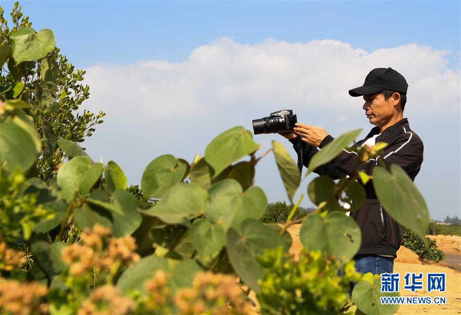 海南新盈紅樹林國家濕地公園巡護(hù)員兼監(jiān)測(cè)員羅理想在濕地公園內(nèi)拍攝紅樹林(12月11日攝)。 羅理想2006年起開始參與紅樹林濕地的保護(hù)工作,近年來他參加了很多關(guān)于濕地的培訓(xùn)。2016年,羅理想在工作中監(jiān)測(cè)到極危鳥種勺嘴鷸,當(dāng)時(shí)有許多媒體做了報(bào)道,后來他又配合專家在濕地公園里發(fā)現(xiàn)了拉氏紅樹,“那個(gè)時(shí)候感覺自己的工作很有價(jià)值”,羅理想說。新華社記者楊冠宇攝