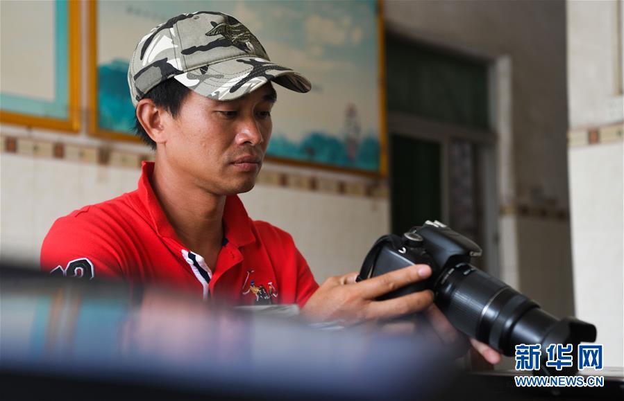 海南清瀾港省級自然保護區(qū)護林員呂詩陽在保護區(qū)內的辦公室里查看自己拍攝的照片(12月17日攝)。 新華社記者楊冠宇攝