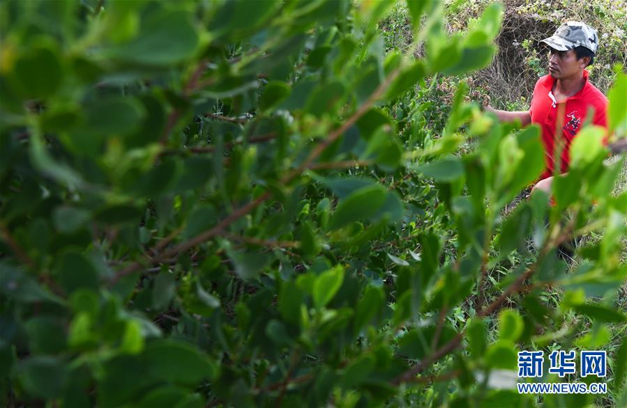 海南清瀾港省級自然保護(hù)區(qū)護(hù)林員呂詩陽查看保護(hù)區(qū)內(nèi)的紅樹林(12月17日攝)。 新華社記者楊冠宇攝
