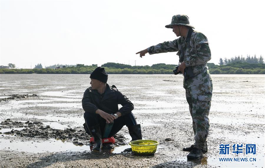 海南儋州新英灣紅樹(shù)林市級(jí)自然保護(hù)區(qū)護(hù)林員陳正平(右)在保護(hù)區(qū)內(nèi)的灘涂上向村民普及紅樹(shù)林濕地相關(guān)知識(shí)(12月10日攝)。陳正平2010年開(kāi)始在保護(hù)區(qū)工作,他將工作發(fā)展成愛(ài)好,廣泛參加各種培訓(xùn)和業(yè)內(nèi)交流。他在工作中拍到瀕危鳥(niǎo)類(lèi)白肩雕出現(xiàn)在海南的照片,這刷新了海南省的鳥(niǎo)種記錄。新華社記者楊冠宇攝