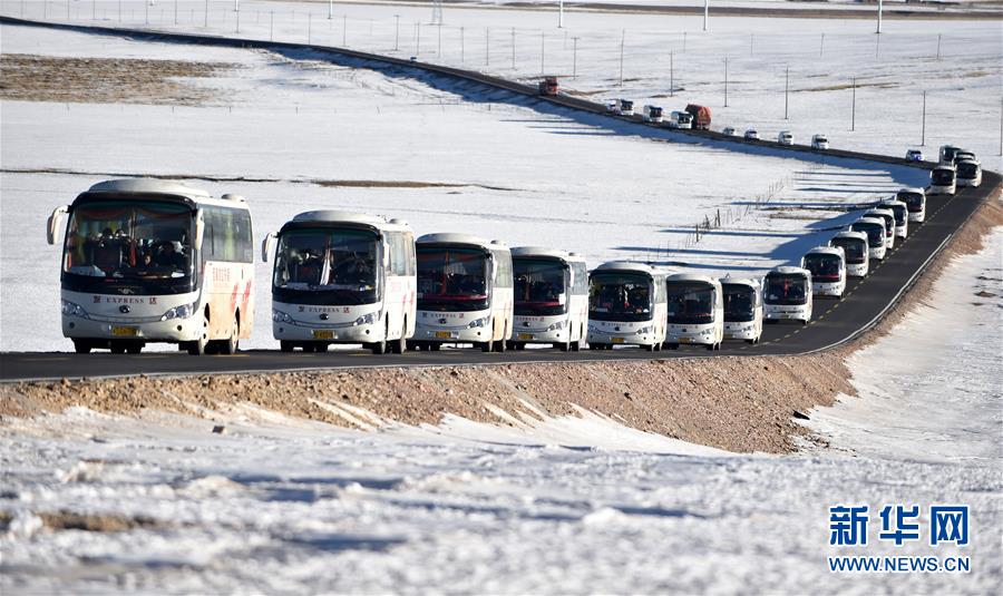 12月23日拍攝的西藏那曲市雙湖縣牧民的遷徙車隊(duì)。近日,西藏那曲市雙湖縣嘎措鄉(xiāng)、措折羌瑪鄉(xiāng)、雅曲鄉(xiāng)共2900人,告別了平均海拔5000米的家鄉(xiāng),經(jīng)過近千公里搬遷到海拔相對較低的藏南雅魯藏布江南岸的貢嘎縣境內(nèi)。這是西藏自治區(qū)近年來實(shí)施的極高海拔生態(tài)搬遷項(xiàng)目之一,雙湖縣三個(gè)鄉(xiāng)的整體搬遷是其中人數(shù)最多、跨度最遠(yuǎn)的一次搬遷。新華社記者覺果攝