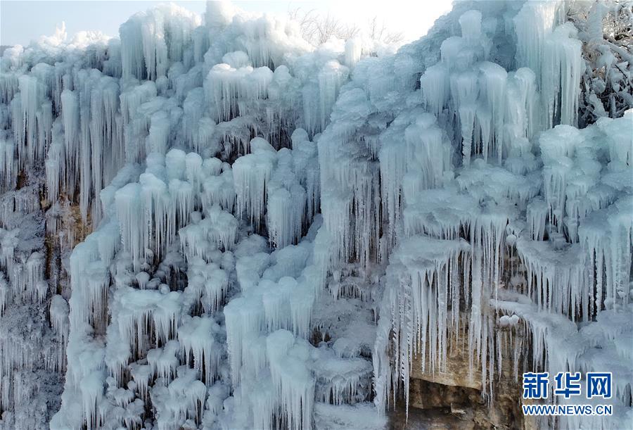 這是平山縣沕沕水景區(qū)的冰瀑(12月25日無人機(jī)攝)。近日,河北省平山縣境內(nèi)的沕沕水景區(qū)出現(xiàn)冰瀑美景,形態(tài)各異的冰柱懸掛在山麓間,吸引游客前來觀賞。新華社記者楊世堯攝