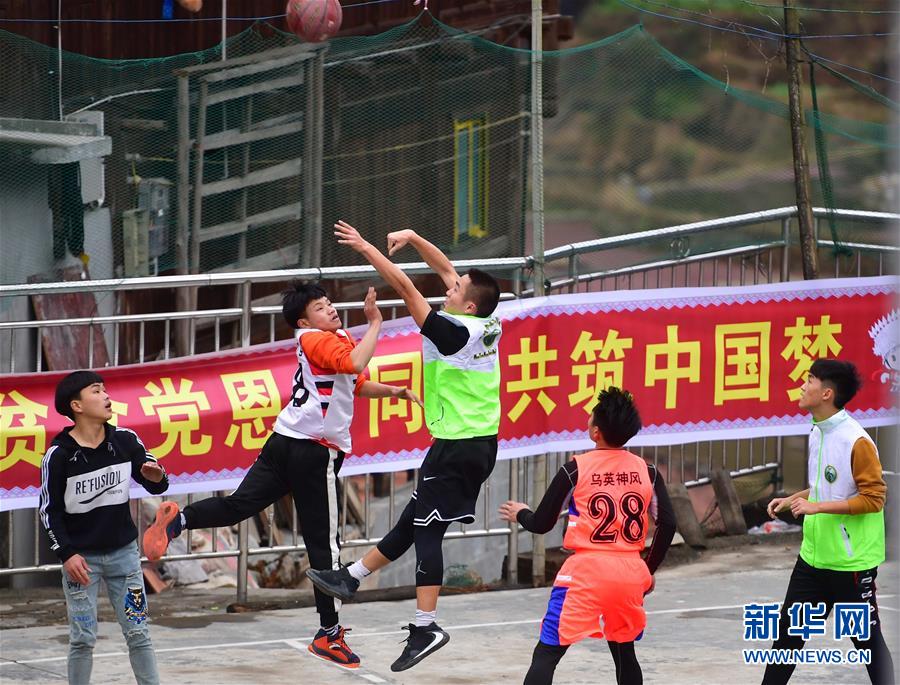 12月26日,澳門青年藝能志愿工作會(huì)的義教老師李嘉堯(右三)在籃球比賽中投籃。 新華社記者 黃孝邦 攝