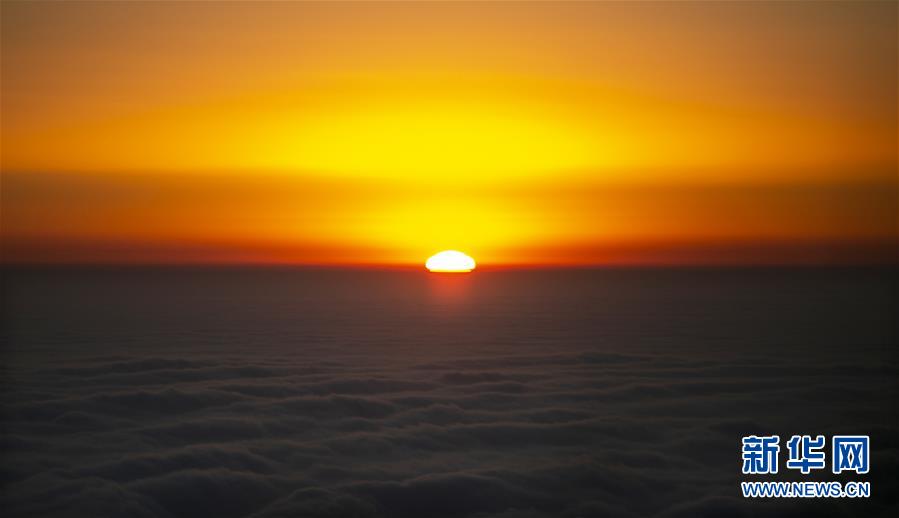 這是12月29日在四川省峨眉山金頂拍攝的日出。時(shí)值冬日,峨眉山銀裝素裹、宛如仙境。新華社記者李夢馨攝