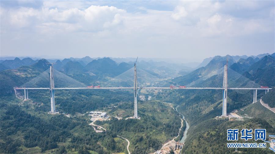 當日,332米高的全球最高混凝土橋塔——貴州平塘至羅甸高速公路控制性工程平塘特大橋成功合龍。記者從貴州省交通運輸廳了解到,平塘特大橋全長2135米,橋面寬30.2米,規(guī)劃雙向4車道,是一座三塔雙索面疊合梁斜拉橋。三座橋塔的高度分別為320米、332米和298米,相當于在峽谷之中建了三座100多層高的大樓。平塘特大橋于2016年4月開工建設(shè),2018年11月橋塔順利封頂,計劃總工期為42個月,總投資15億元。此次合龍后,還要進行橋面施工和欄桿等工程建設(shè),預(yù)計今年底全橋通車,屆時平塘到羅甸的通行時間將從2個半小時縮短至1小時,將成為連接貴州南部的交通要道,對助推滇黔桂石漠化片區(qū)脫貧攻堅具有重要意義。