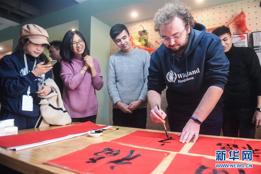 當(dāng)日,浙江省杭州市拱墅區(qū)上塘街道的瓜山新苑社區(qū)舉辦居民入住后的首個(gè)迎新年活動(dòng),社區(qū)內(nèi)的中外青年一起體驗(yàn)寫春聯(lián)、貼福字、包餃子等中國傳統(tǒng)習(xí)俗,在熱鬧喜慶的氣氛中迎接即將到來的新年。