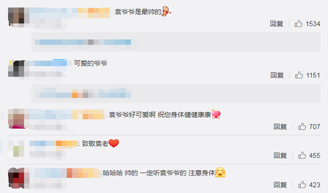 網友看后,紛紛評論,“袁爺爺是帥的”,“一定聽袁爺爺話注意身體”!