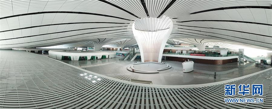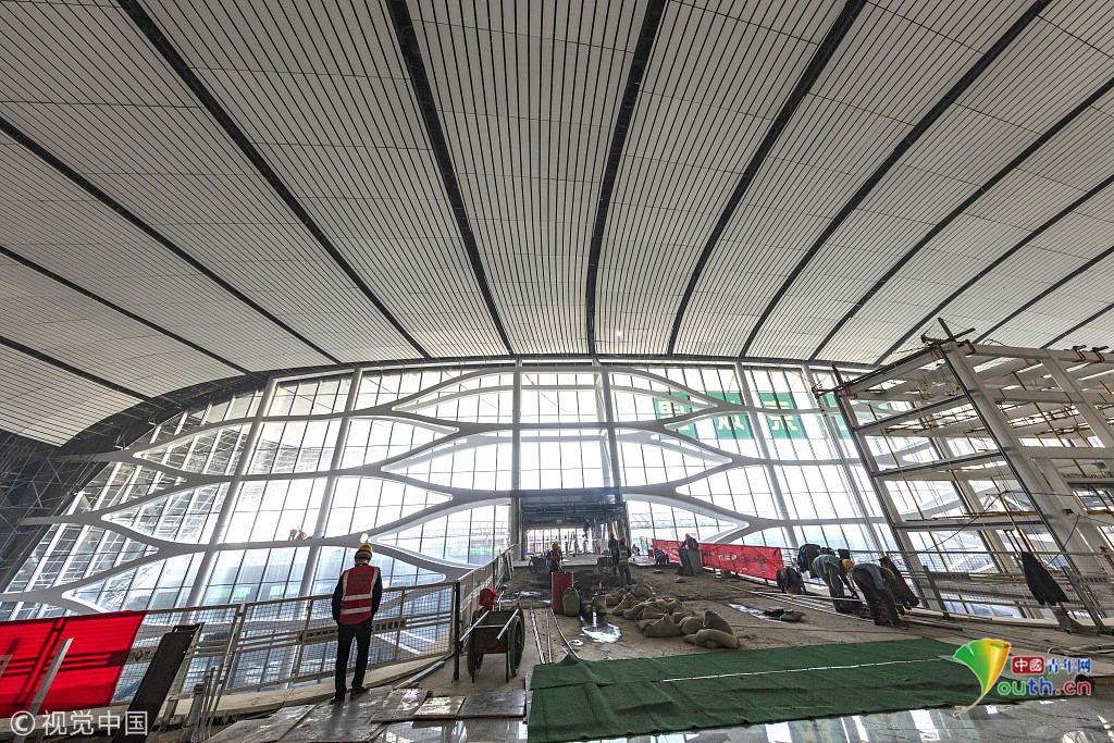 2019年4月26日,北京大興國際機(jī)場將于9月底正式通航。工程建設(shè)進(jìn)入總攻階段,目前,航站樓內(nèi)部裝飾進(jìn)行收尾的工作。武輝/千龍圖像/視覺中國