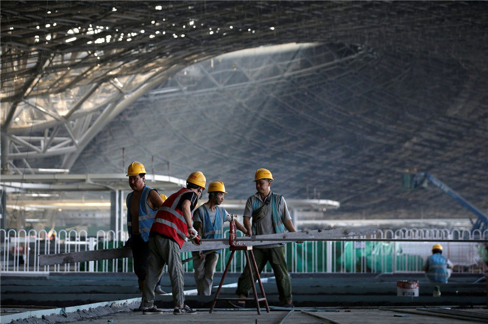 2018年10月27日,北京,大興新機(jī)場的建設(shè)者。周錦/視覺中國