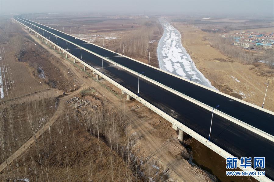 這是1月3日拍攝的北京大興國際機(jī)場北線高速公路廊坊段龍河特大橋(無人機(jī)照片)。新華社記者牟宇攝